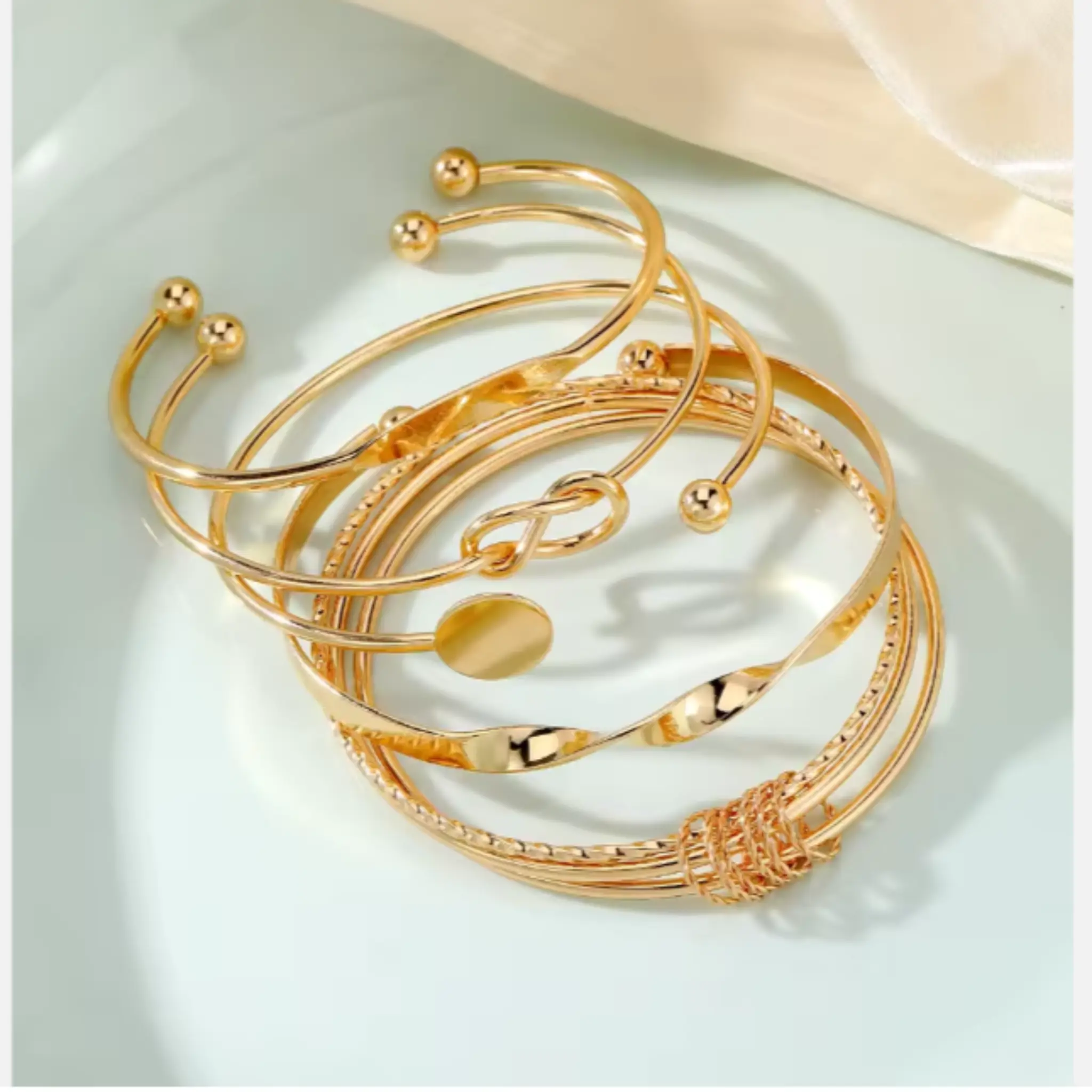 The neutral gold colour pairs beautifully with any accessory. Match it with your gold earrings, rings, or a necklace for a complete look. For a punk-inspired contrast, combine it with silver or black jewellery. The bracelets are easy to maintain — keep them dry, store them in a soft pouch, and wipe them gently with a clean cloth after use.